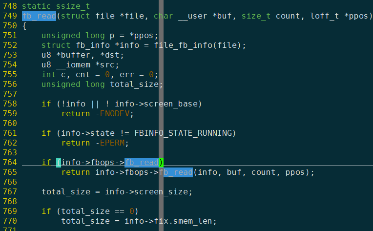 linux内核中同样是存在很多实例,主要是中间层通过判断底层是否实现相应行为(通过函数指针判断),未实现证明不特殊,使用中间层的统用逻辑即可(下图代码来自内核fbmem.c)。
